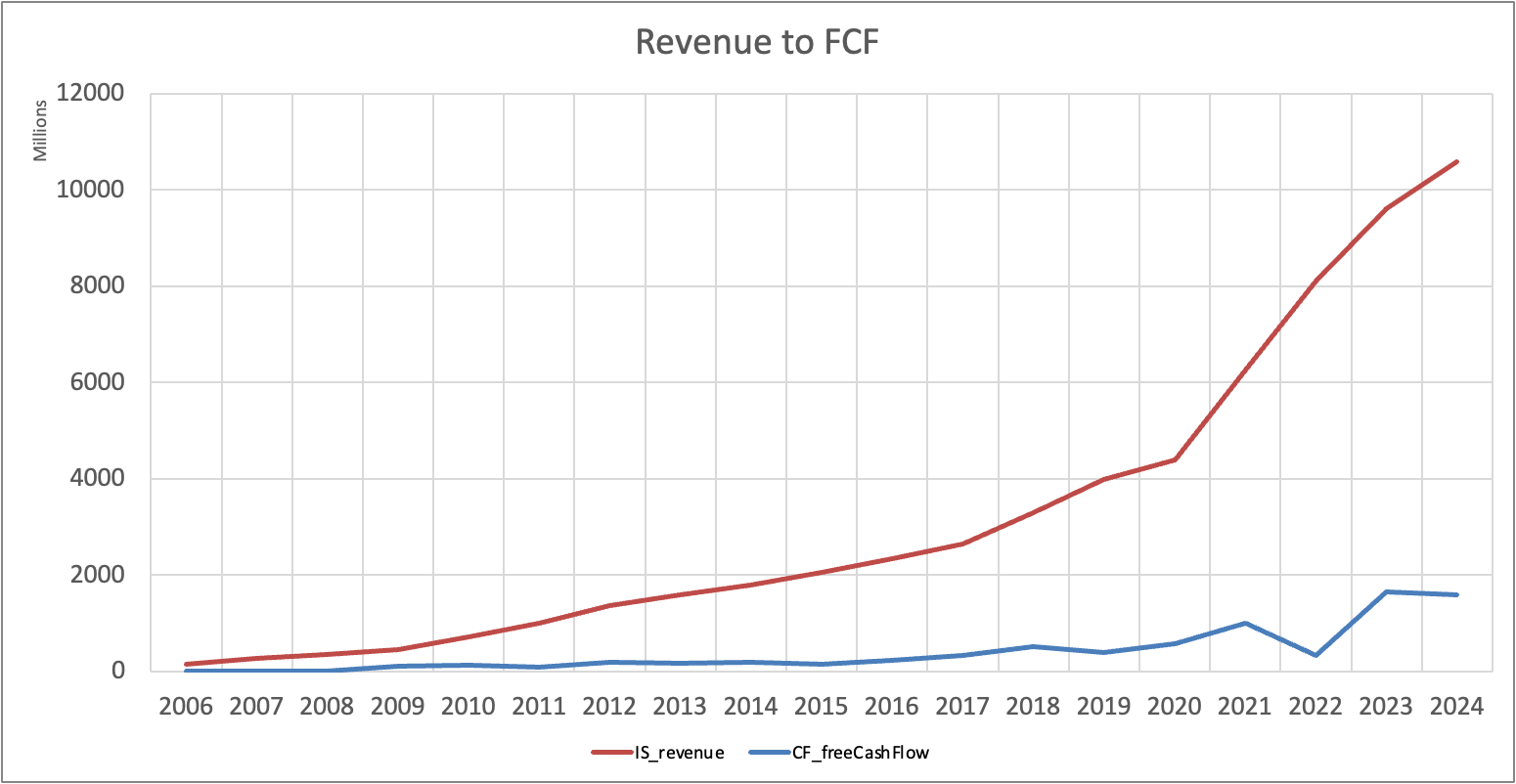 Последний вопрос, на который я хотел себе ответить - это куда делся FCF, если выручка не замедлялась.