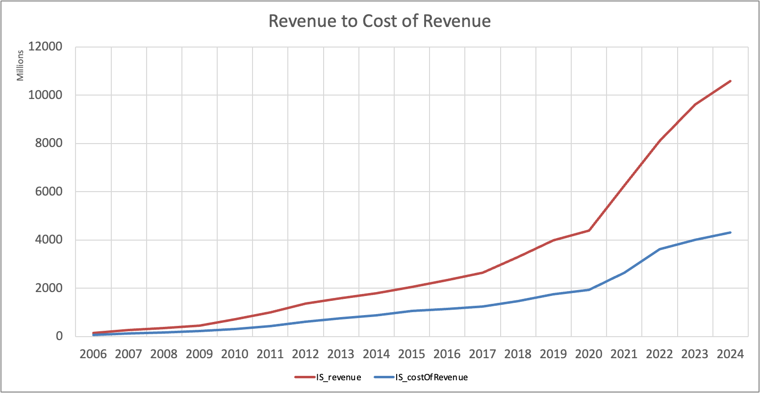 Еще одно соотношение, которое можно сразу глянуть - это Revenue к Cost of Revenue.