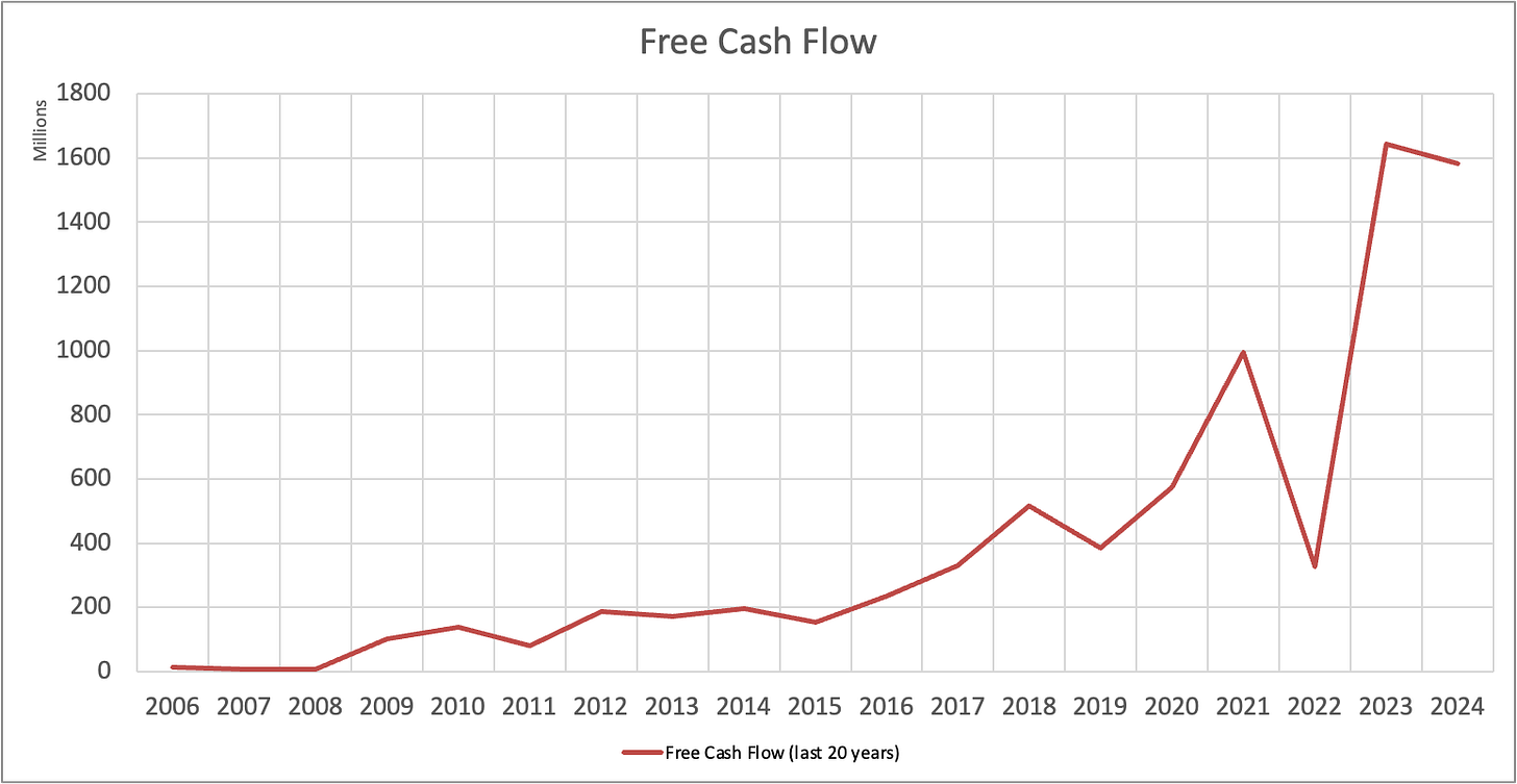 Кроме последнего года (о нем поговорим ниже), у LULU с этим проблем особо нет. FCF есть, при чем растущий год к году. 2022 год у всех был какашечным.