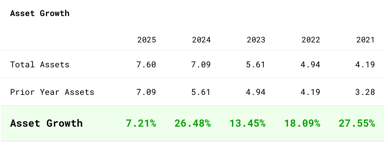 Посмотрим на Asset Growth в предыдущие годы. Помним, что Total Assets для LULU - это собственные магазины и распределительные центры.